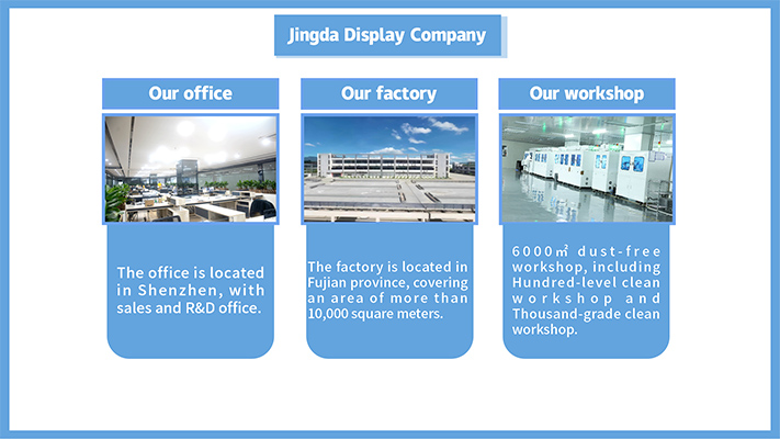 Jingda display manufacture small-mid size display modules, including monochrome LCD and LCM, 0.96-25 inch TFT & OLED LCM,